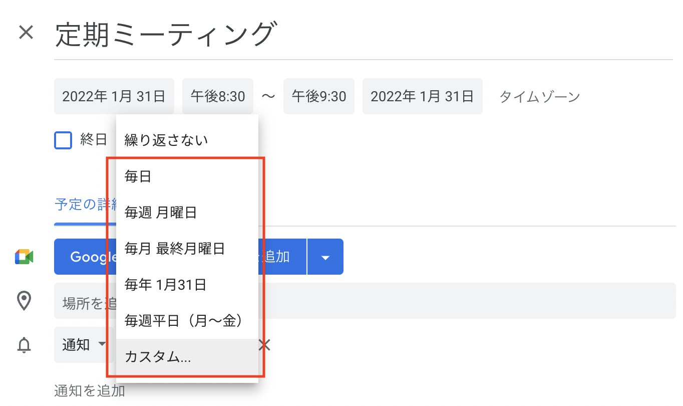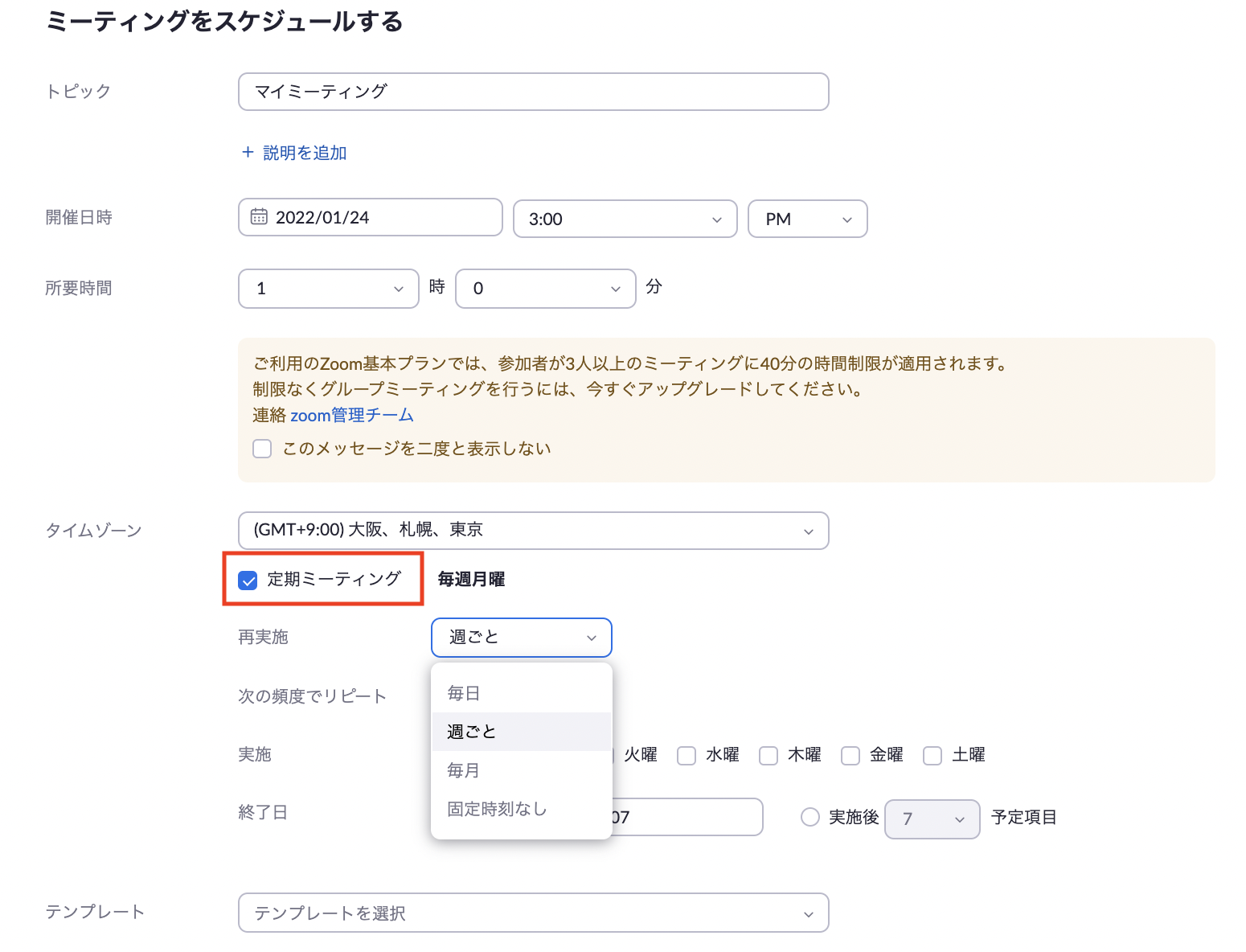 3.同一定期会議を複数回変更した場合、正常に反映されない場合がございます