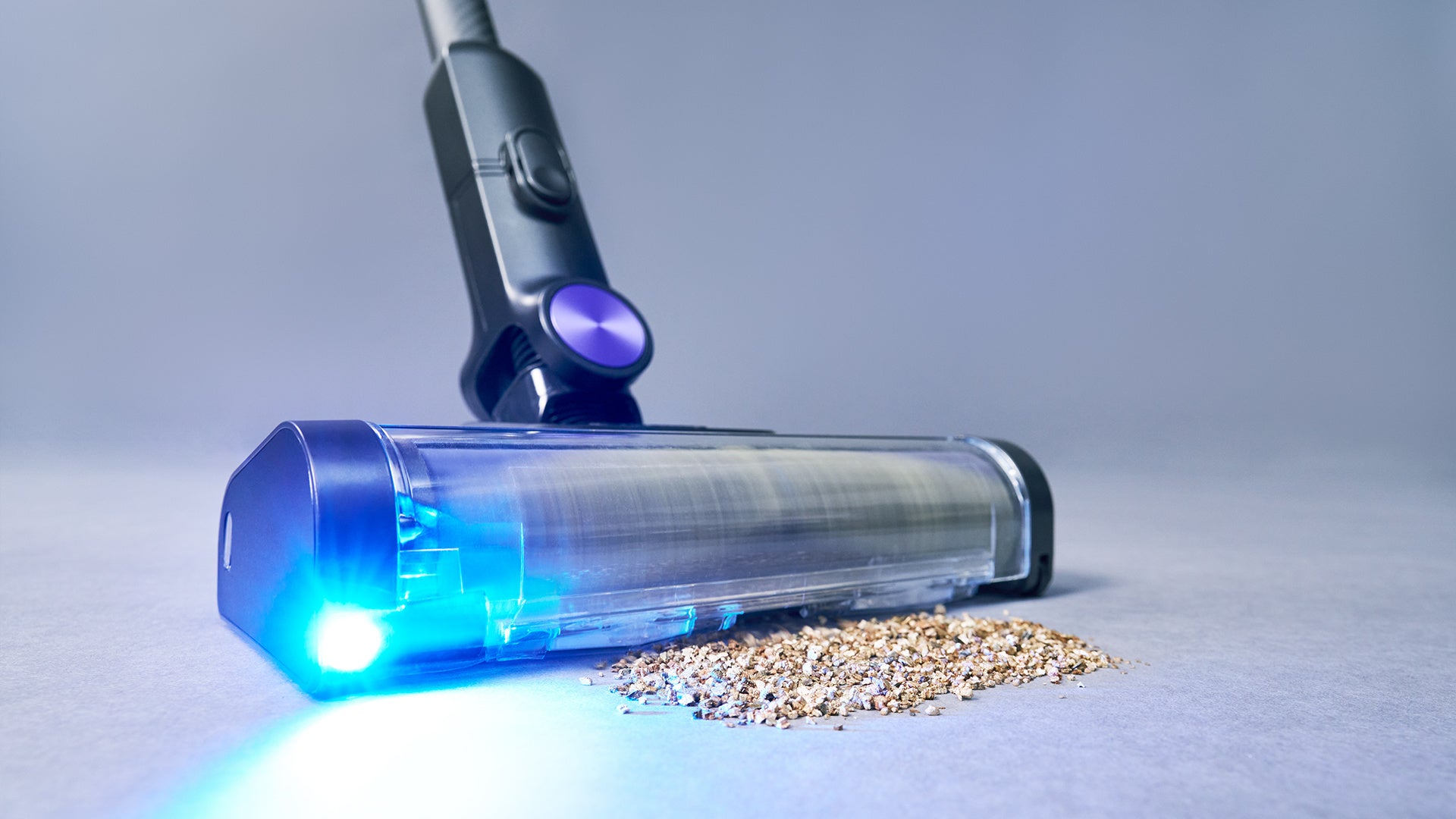 新開発の「青色LEDヘッドライト」が床を明るく照らすことで、目に見えにくいゴミやほこりを浮かび上がらせ、見逃しやすい場所までしっかりと可視化。これまで以上に取り残しなく、徹底的に掃除することが可能になります。
