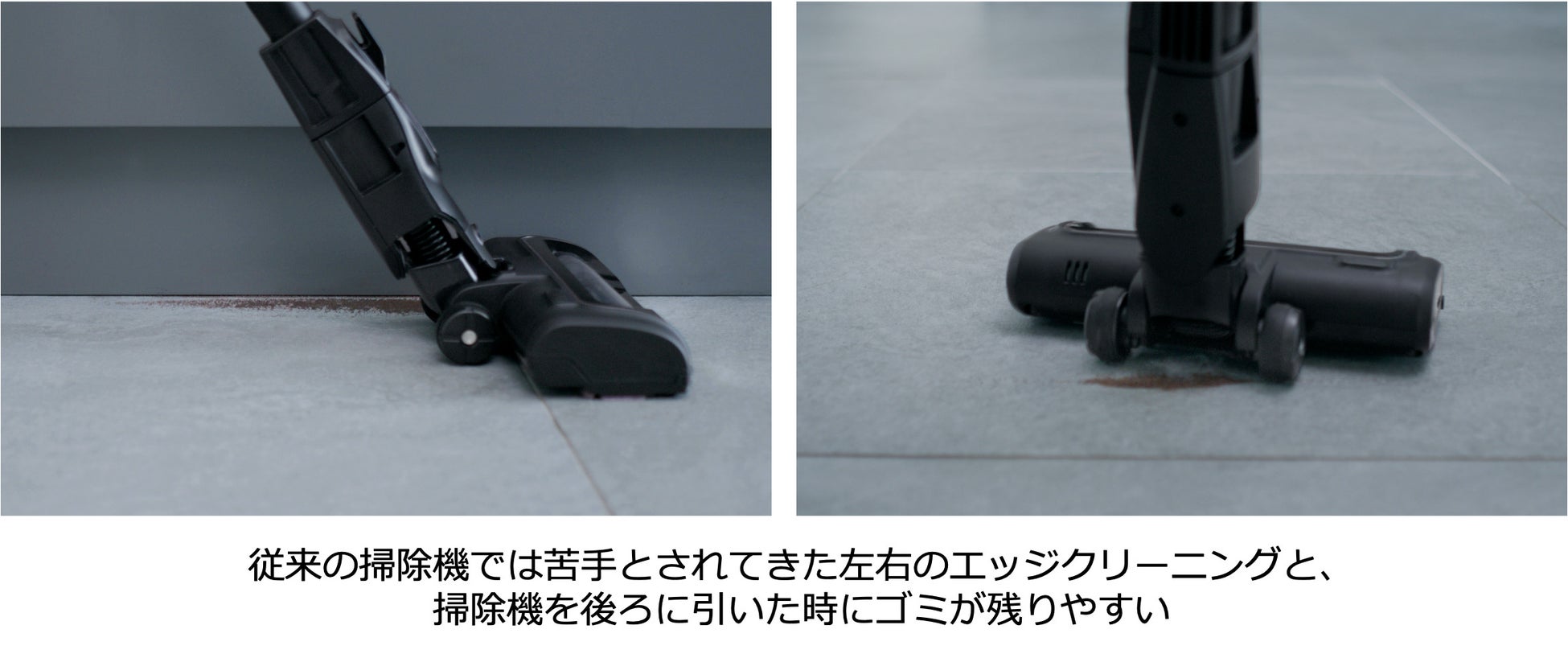 普段のお掃除の仕方を変えずに、利用者が意識せずとも、従来通り前後に動かすだけでこれまで以上に 効果的かつ効率的なお掃除を実現します。「掃除性能を最優先に考え、ゴミを徹底的に取り残したくない。それでいて、これまでよりもラクに掃除を済ませたい」そのような理想を叶える新しい掃除機としてご提案いたします。