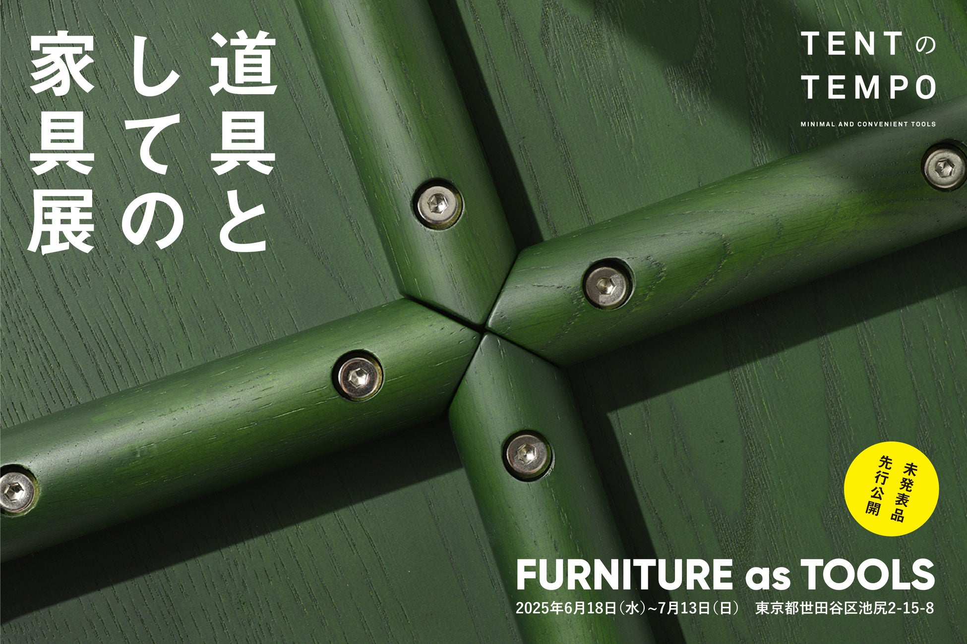 プロダクトデザインを中心に、さまざまな「ものづくり」を手がけるクリエイティブユニット TENT(東京都世田谷区池尻2-15-8)は、同社が運営する道具の店「TENTのTEMPO」にて、2025年6月18日(水)から7月13日(日)まで、家具の企画展『道具としての家具展』を開催します。