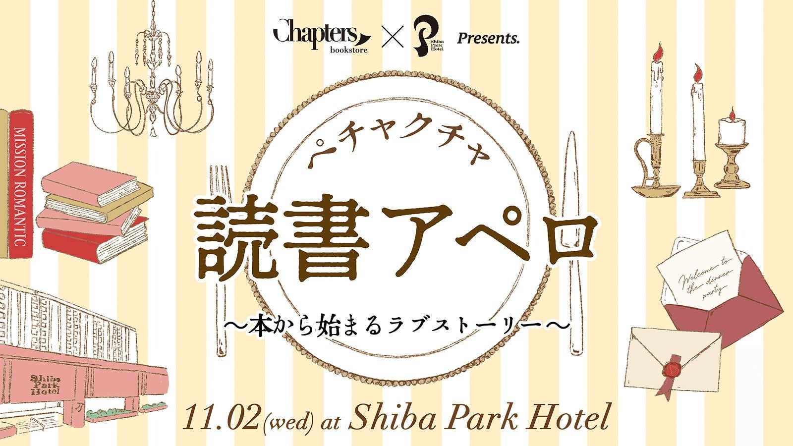 株式会社芝パークホテル(東京都港区、取締役社⻑ 柳瀬連太郎)は、本との出会い⼈との出会いを叶えるオンライン書店「Chapters bookstore(チャプターズ)」を運営する株式会社MISSION ROMANTIC(代表取締役:森本萌乃、所在地:東京都渋⾕区)と共同で、チャプターズの35歳以上のお客様を対象に男⼥の恋愛を後押しするリアルイベント"ペチャクチャ読書アペロ"をこの秋開催いたします。