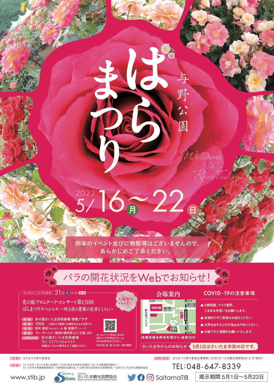 また、与野公園のバラの開花情報を、公益社団法人さいたま観光国際協会のホームページでお知らせします。