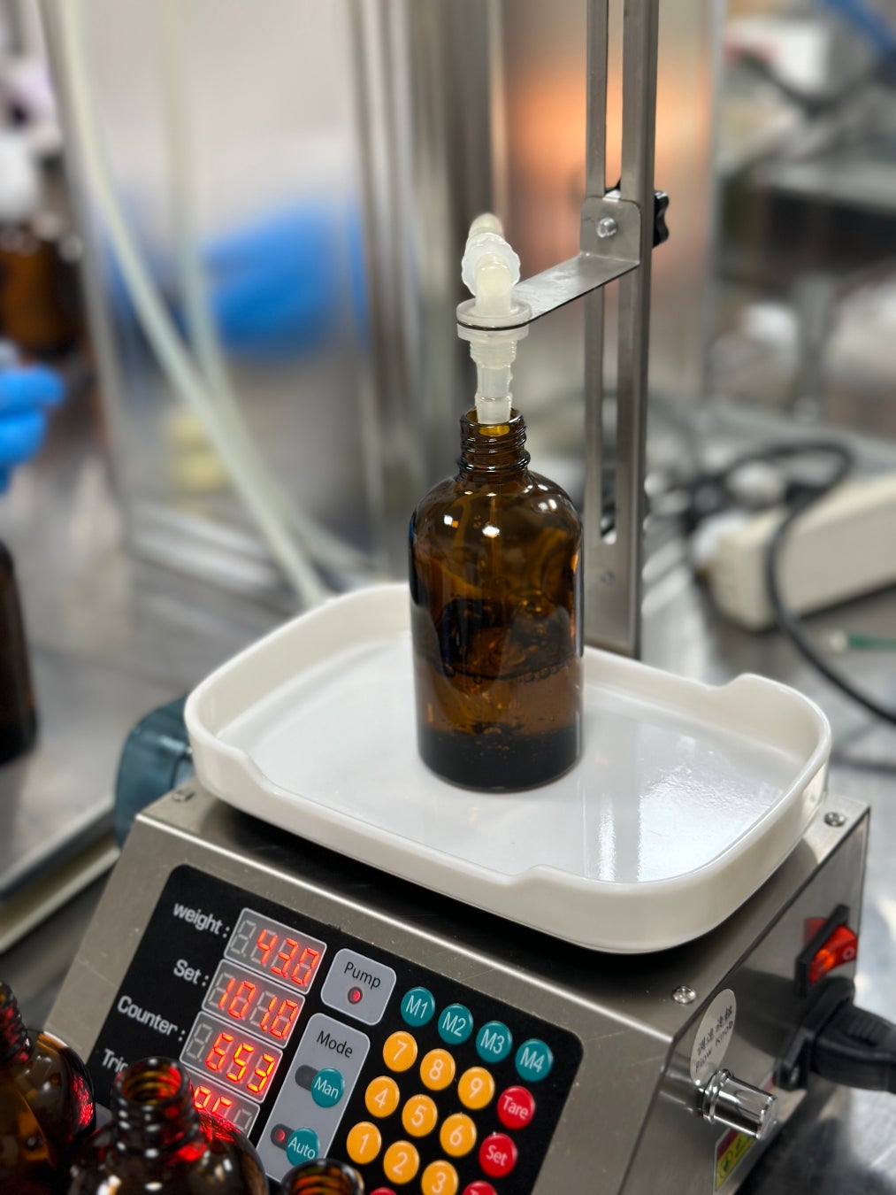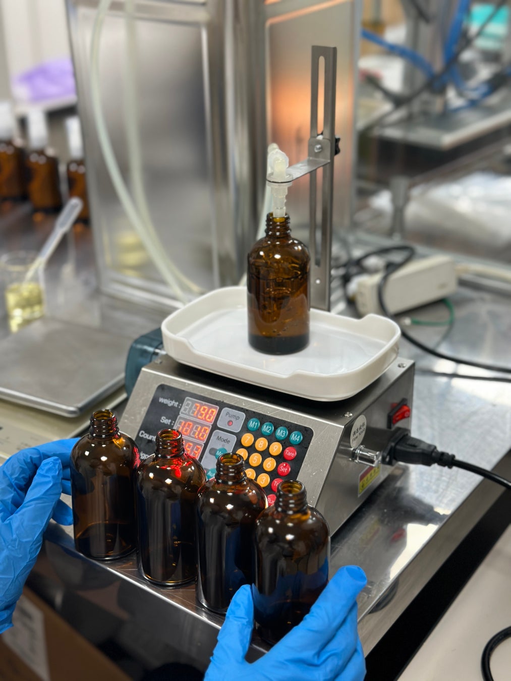 この工程では、製品のボトルにオイルを充填します。高精度の充填機を使用して、必要な量のオイルを正確にボトルに注入します。