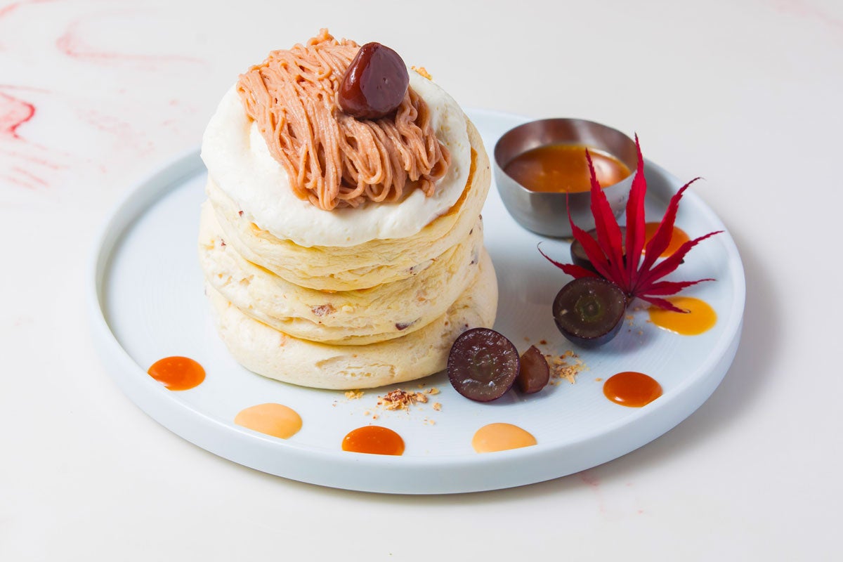 秋の風味が広がる栗の風味をたっぷり詰め込んだ、ふわふわ食感の新感覚パンケーキ。