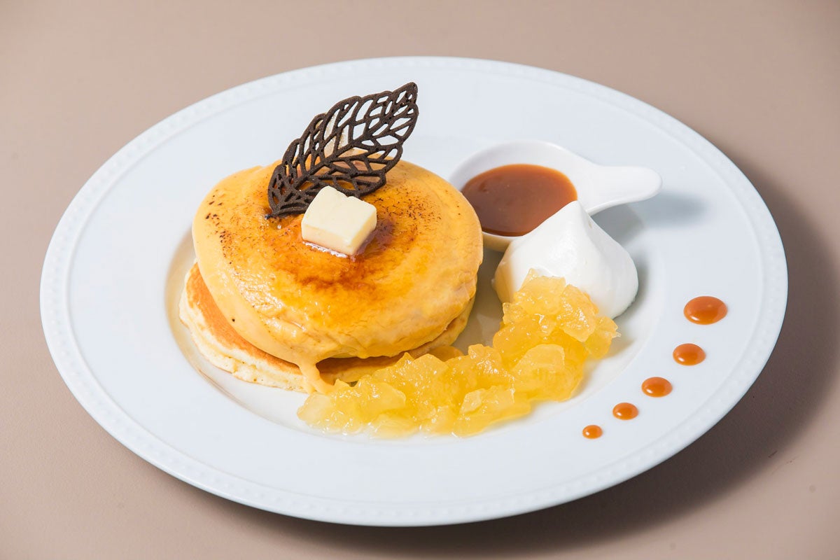 メレンゲたっぷりのふわふわパンケーキがお好みの方は「栗づくしモンブランパンケーキ」を、薄焼きのもっちりとしたパンケーキがお好みの方は「りんごのキャラメルブリュレパンケーキ」をぜひお試しください。