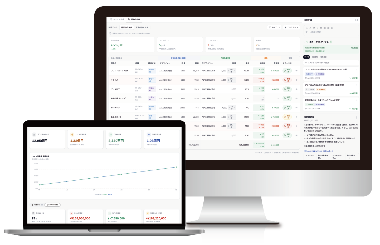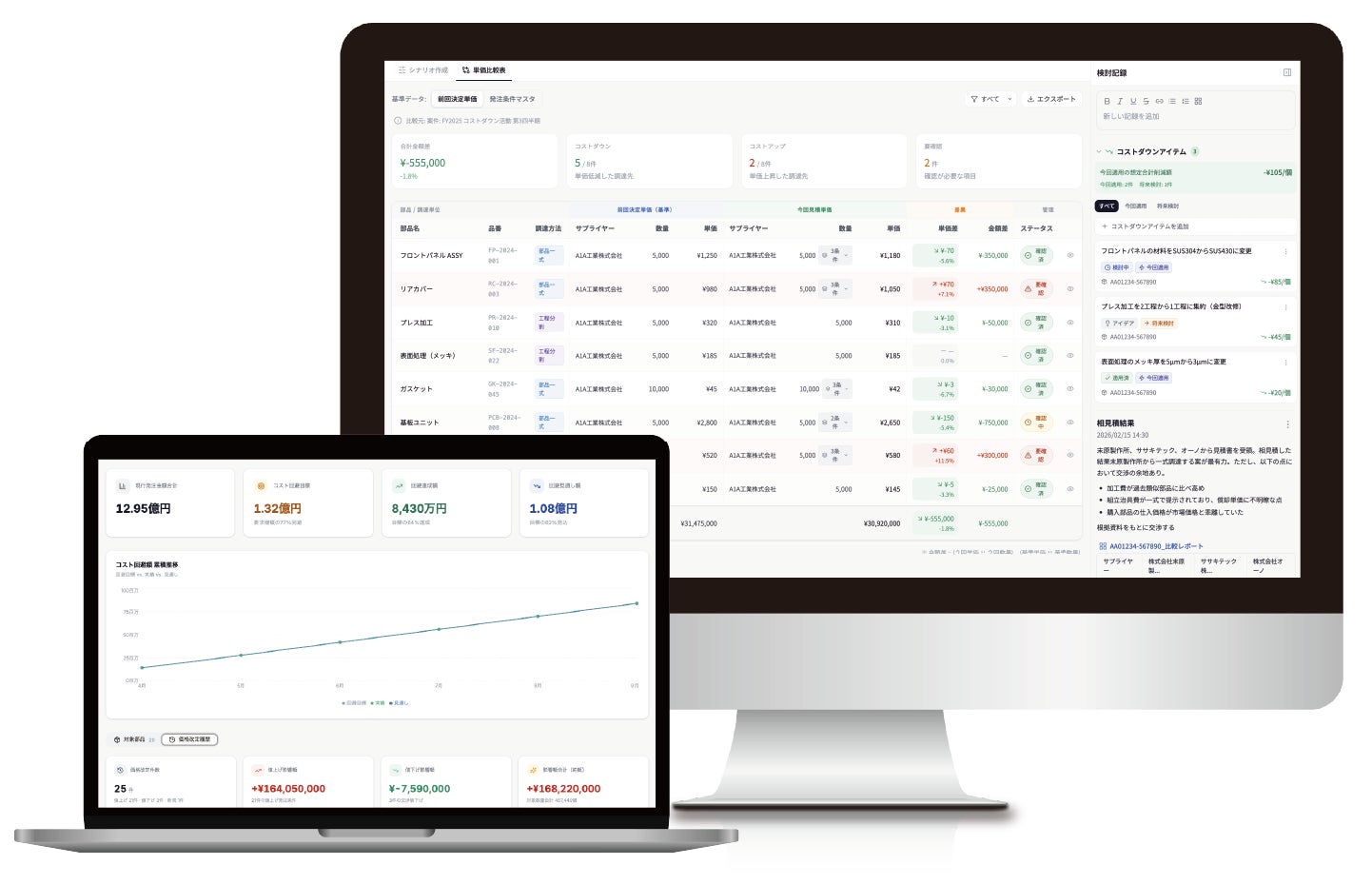 A1Aは今後も、AIによるコストダウンに関わる意思決定支援機能の強化や、対応品目の拡大を推進します。また、サプライヤーの中期経営計画等の公開情報を活用したリスク提示機能など、調達・購買部門が「能動的な調達」へと変革するためのプラットフォーム開発を加速させてまいります。
