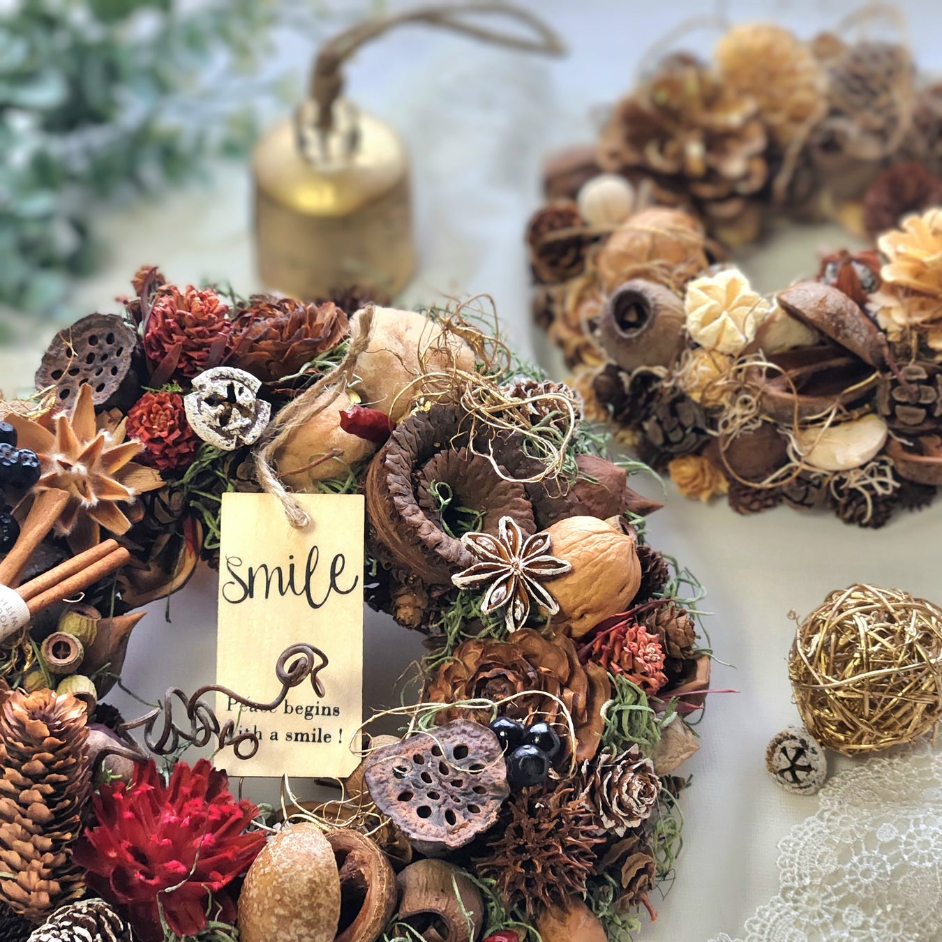 またロスフラワーや間伐木材、陶器の破片などの不要品を昇華させたアップサイクルな作品や、フェアトレード商品などサステナブルなモノもたくさん。SDGsのストーリー