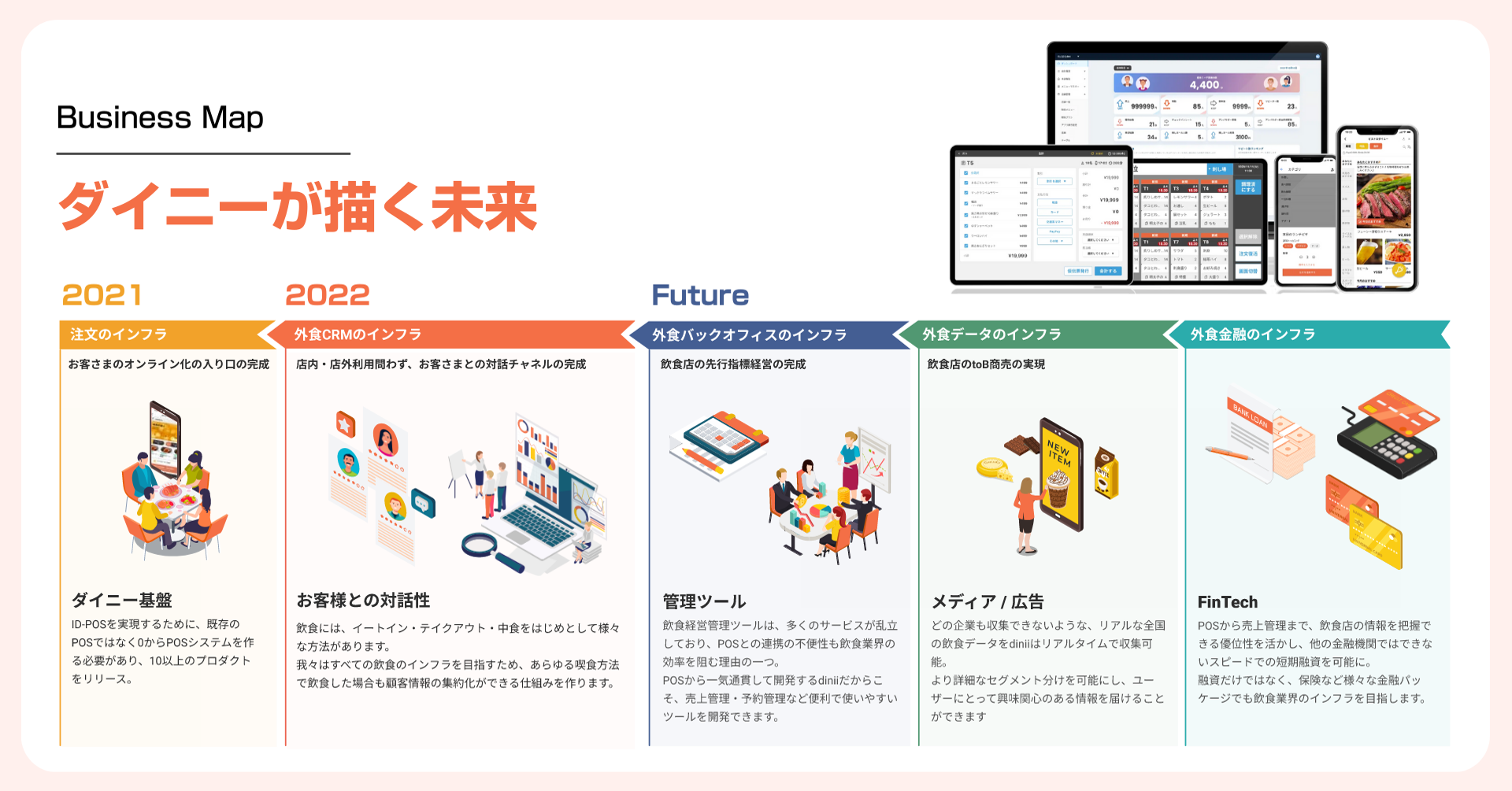 事業内容:飲食向けモバイルオーダー・POSの開発URL:https://www.dinii.jp/
