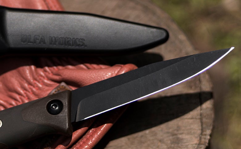 低温黒色クロムメッキで表面処理されたマットブラックカラーの刃は、アウトドアショップ「Orange」監修で、その見た目の美しさだけでなく、防錆・防食・耐摩耗性に優れています。また、サバイバルナイフのような広い刃幅でなく、細かい作業でも使いやすいように適度な細さの刃幅で、切っ先は非常に鋭くしています。フルタング構造と合わさることで、汎用性の高い刃に仕上げています。