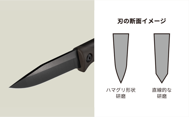 職人が一本一本丁寧に研ぎあげた刃は、刃先がハマグリ形状になっており、良く切れるだけでなく、切れ味の持続性と欠けにくい耐久性も備えています。