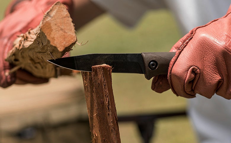 ※硬い薪(広葉樹) や太い木の無理なバトニングは刃が折れたり欠けたりする恐れがあり、非常に危険ですのでご注意ください。
