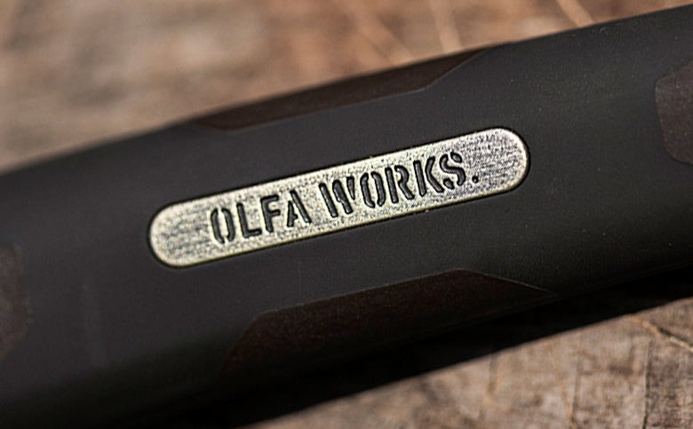 「OLFA WORKS」のロゴが刻印されたアルミダイキャスト成形のエンブレムは、3コートの塗装による高級感のある特別仕様です。