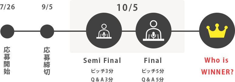 ・セミファイナル・ファイナルの審査項目は、革新性・実現可能性・市場規模・ピッチについて評価するものとする。