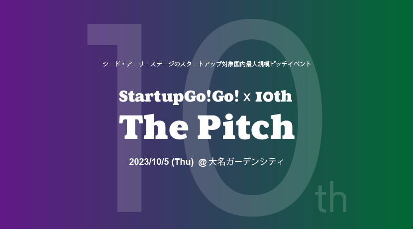 優勝賞金100万円!シードからアーリーステージ向けのピッチイベント『StartupGo!Go!×10th The Pitch』募集開始!!