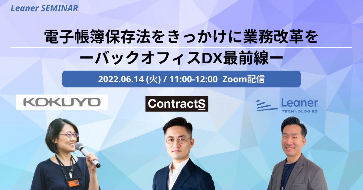 企業の調達管理プラットフォーム「Leaner」を提供する株式会社Leaner Technologies(本社:東京都目黒区、代表取締役:大平裕介)は、2022年06月14日(火)11:00-12:00に、3社共催による「電子帳簿保存法をきっかけに業務改革をーバックオフィスDX最前線ー」を開催いたします。
