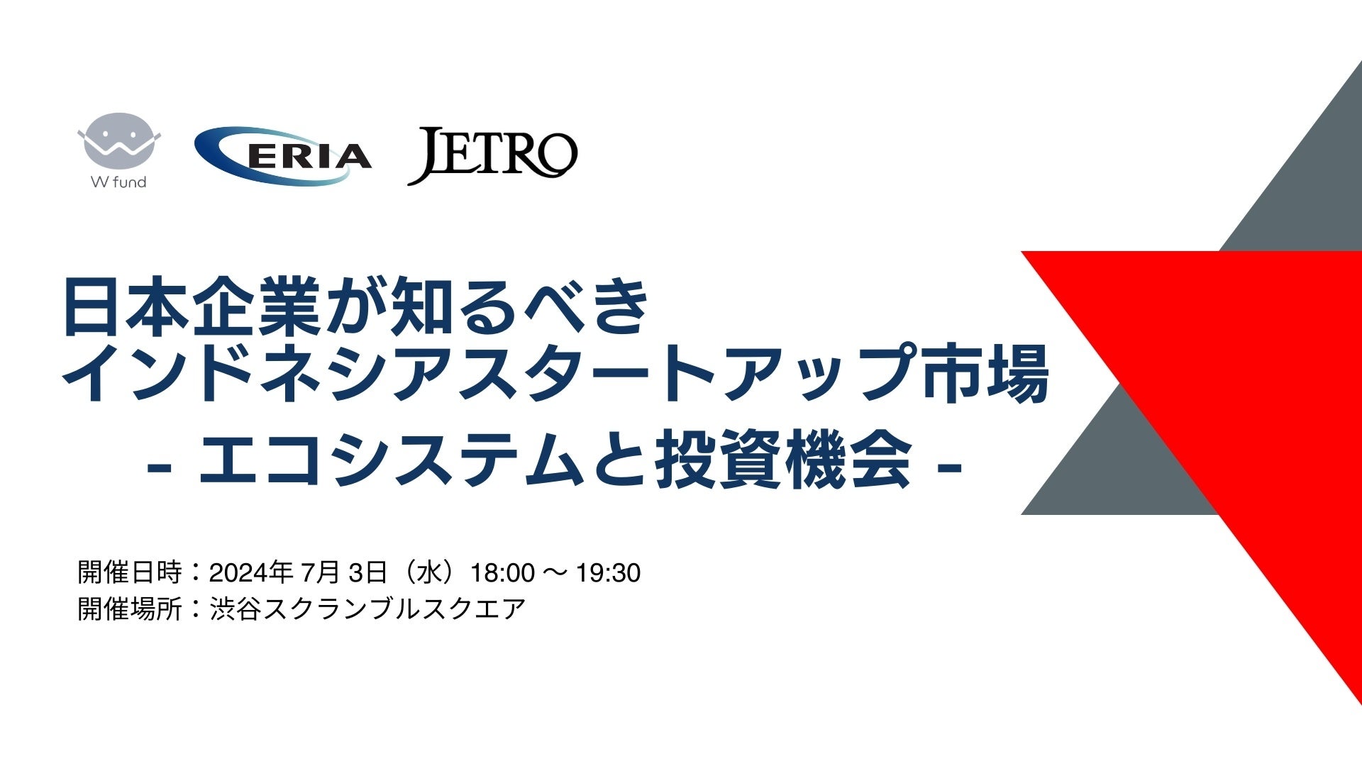 【W fund・東南アジア】ERIA・JETROとの共同イベント開催「日本企業が知るべきインドネシアスタートアップ市場:エコシステムと投資機会」参加者募集のお知らせ