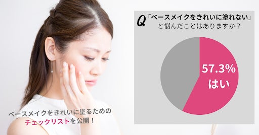 調査の結果、57.3%の女性が「ベースメイクをきれいに塗れない」と悩んだことがあることが明らかになりました。