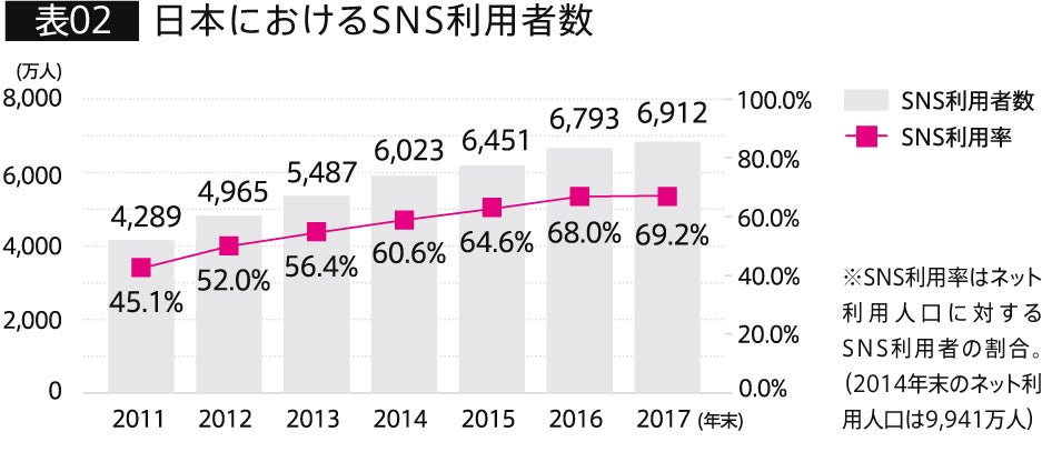 ※表02:日本におけるSNS利用者数、ICT総研「2015年度 SNS利用動向に関する調査」