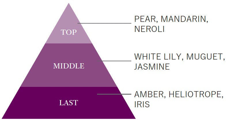 リリー、ジャスミン、イリスが香る、高級感のあふれるエレガントフローラルな香り。