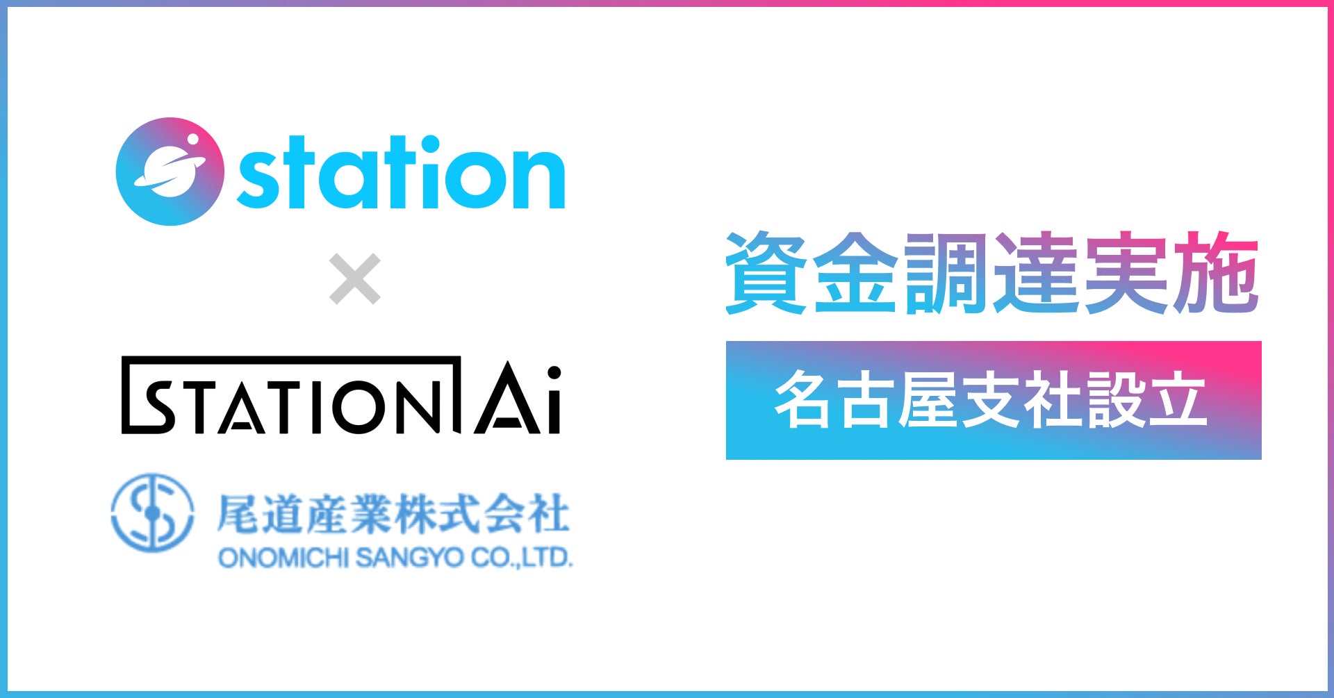 station株式会社(本社:東京都港区、共同代表:渡邊雄介、三宅高弘、以下station)は、事業拡大に伴う支社展開及び組織強化のため、ソフトバンク株式会社の子会社で、愛知県スタートアップ支援拠点「STATION Ai」の運営事業を担うSTATION Ai株式会社(ステーション・エーアイ、本社:名古屋市中村区、代表取締役社長 兼 CEO:佐橋宏隆)が、株式会社ディープコア(本社:東京都文京区、代表取締役社長:仁木 勝雅)と共同で設立した「STATION Ai Central Japan 1号ファンド※1」、尾道産業株式会社(本社:広島県尾道市、代表取締役社長:松井孝光)より、資金調達を実施したことを発表いたします。