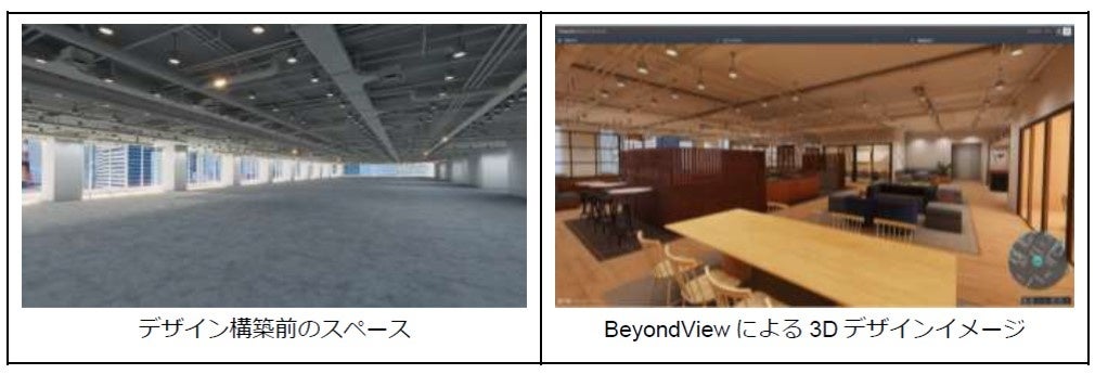 BeyondViewの3DデジタルソリューションとAIを活用して物理空間とデジタル空間を混在させ、オフィスデザインやレイアウト構築前の空間をあたかも構築後のように再現する「未来のフレキシブルオフィス体験」を提供します。これにより、企業の総務やファシリティ担当者が、WeWorkの入居を検討する際、ライブストリーミング(オンライン会議)で高精細な3Dによるバーチャルオフィスツアーを体験することが可能になります。オフィス移転の検討から入居までの意思決定を短縮し、スピーディーな経営判断を支援します。