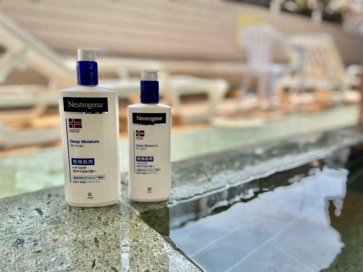 サウナ後には、水分・油分の両方が失われがちです。そうした状況において、ニュートロジーナの中でも青色のパッケージが特徴のボディミルクを使っていただくのが特におすすめとご紹介しました。ニュートロジーナ®は、保湿成分である医療グレードのグリセリン(※1)等にて油分・水分がどちらも補えるだけでなく、さっぱりとした使用感で、サウナ後にもすぐ洋服が着られるような仕様であることが挙げられます。保湿を持続させるために重要なグリセリンは、一つ一つの分子がとても小さいため、角層の隙間にしっかりと浸透し、その内側まで(※2)保湿することが可能となっています。最後に水野より、「潤うけどさっぱりな青のニュートロジーナをぜひサウナ後の乾燥保湿ケアに使ってみてください」と締めくくりました。