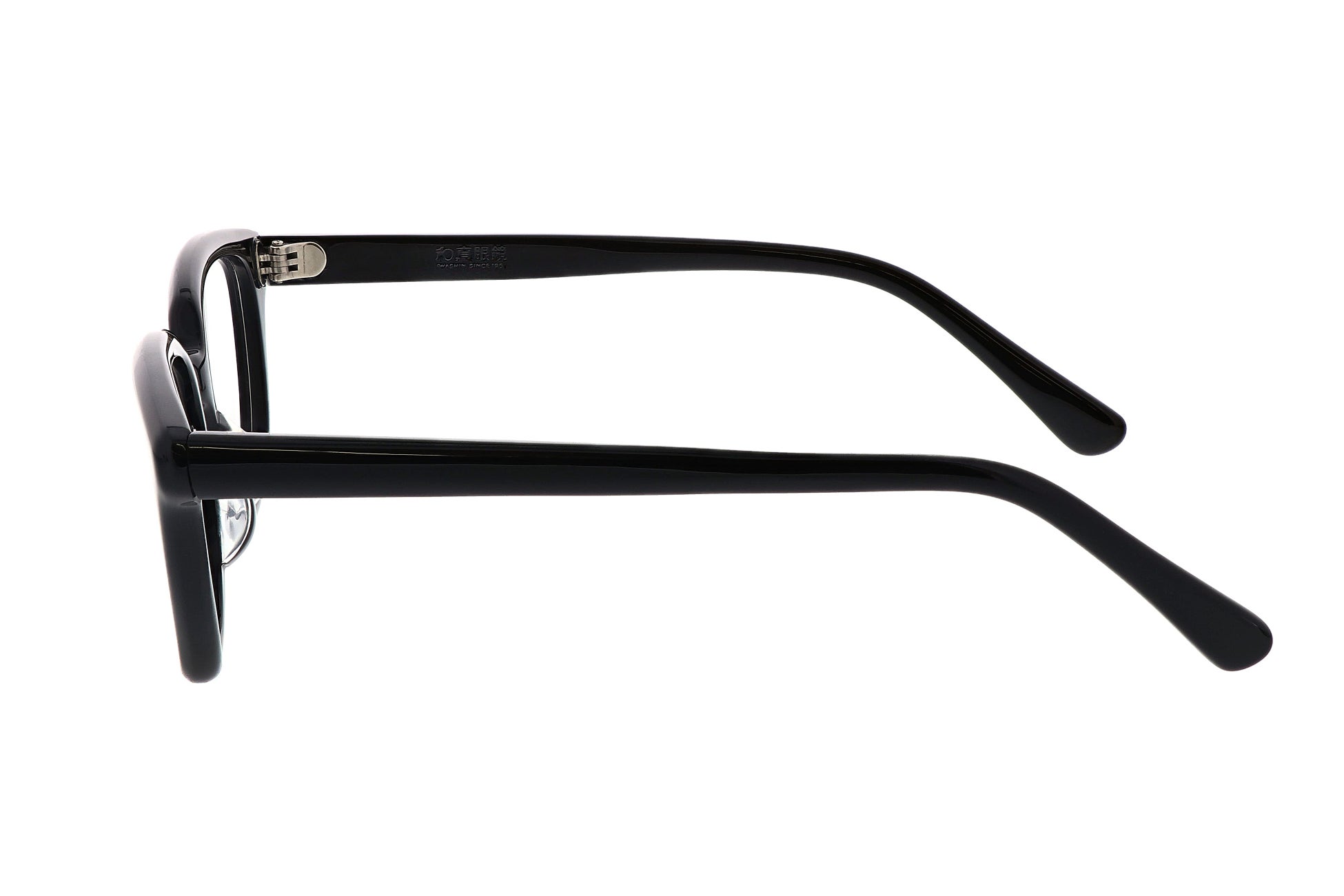 共に、厳しい修正を重ねて実現したフレームの太さと丸みのあるフォルム、深みのある黒プラスチック素材にしっとりとした質感を加える”磨き上げ”仕上げ、といった眼鏡を知り尽くした鯖江の職人技術をお楽しみください。