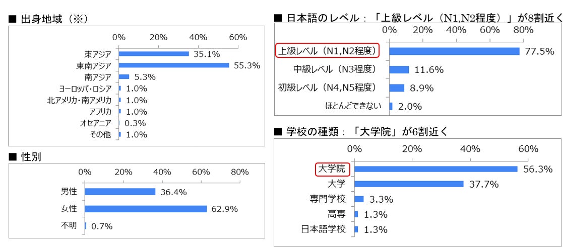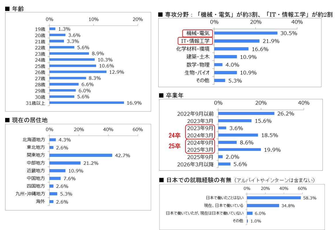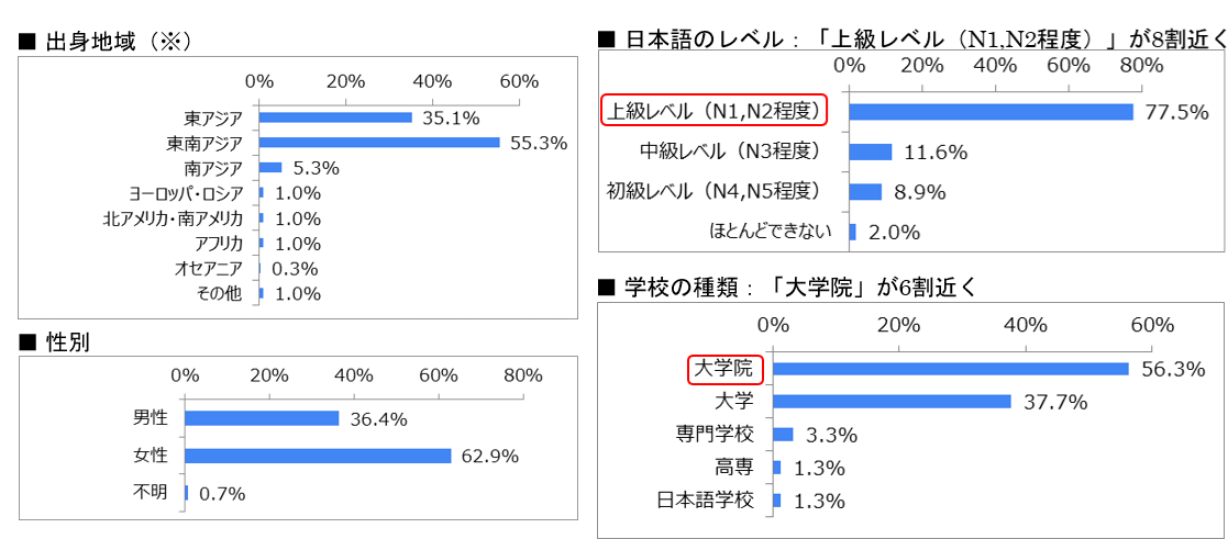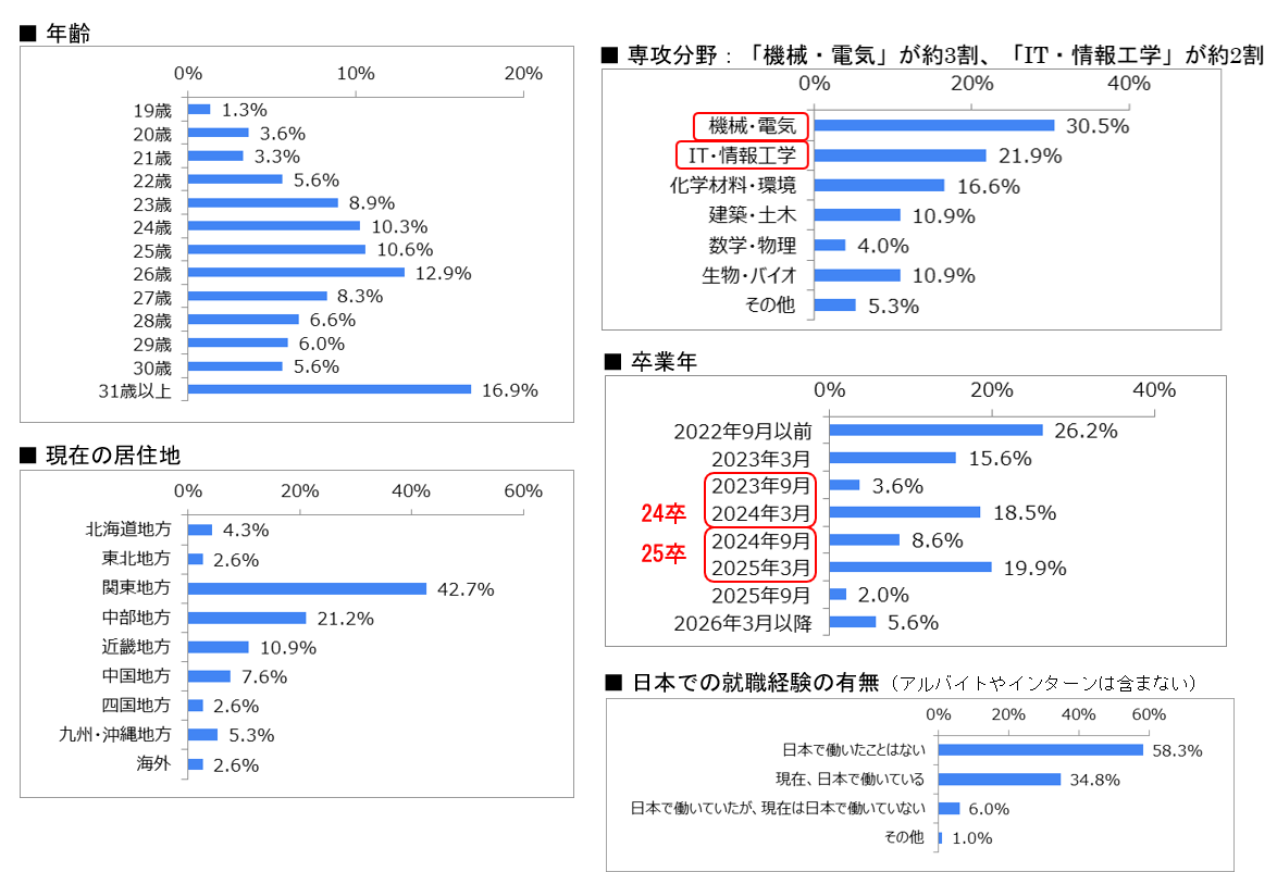回答者の属性 『リュウカツ』登録者の特長である、高学歴で日本語レベルが高い理系留学生が多数