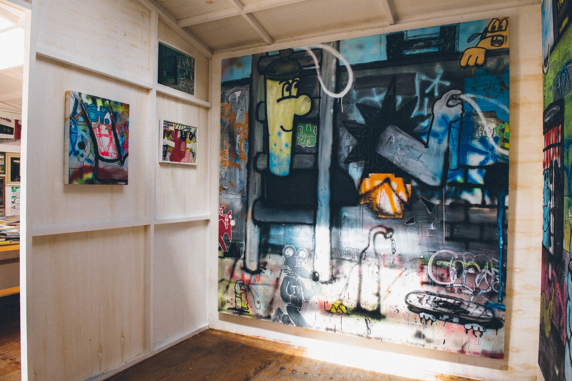 本展にはネズミのモチーフが多く登場します。これはアーティスト自身のポートレートであり、また街に暮らす人々、私たち自身でもあります。このようなネズミの表現はフランスのレジスタンスにおいてナチスドイツに抵抗する人々を表し、5月革命においても民主化を求める学生達の象徴でした。Banksyの作品などストリートアートにおけるネズミのアイコンはこのような歴史性に基づいています。また地図の作品においては渋谷のサブカルチャーの歴史について記述をおこないます。主には現在も見ることができる物(例えば街残る記念碑的なグラフィティなど)を扱いますが、かつて何かが在った、どんな出来事があったかなど、今の景色の中で見ることができない物事についても取り上げます。