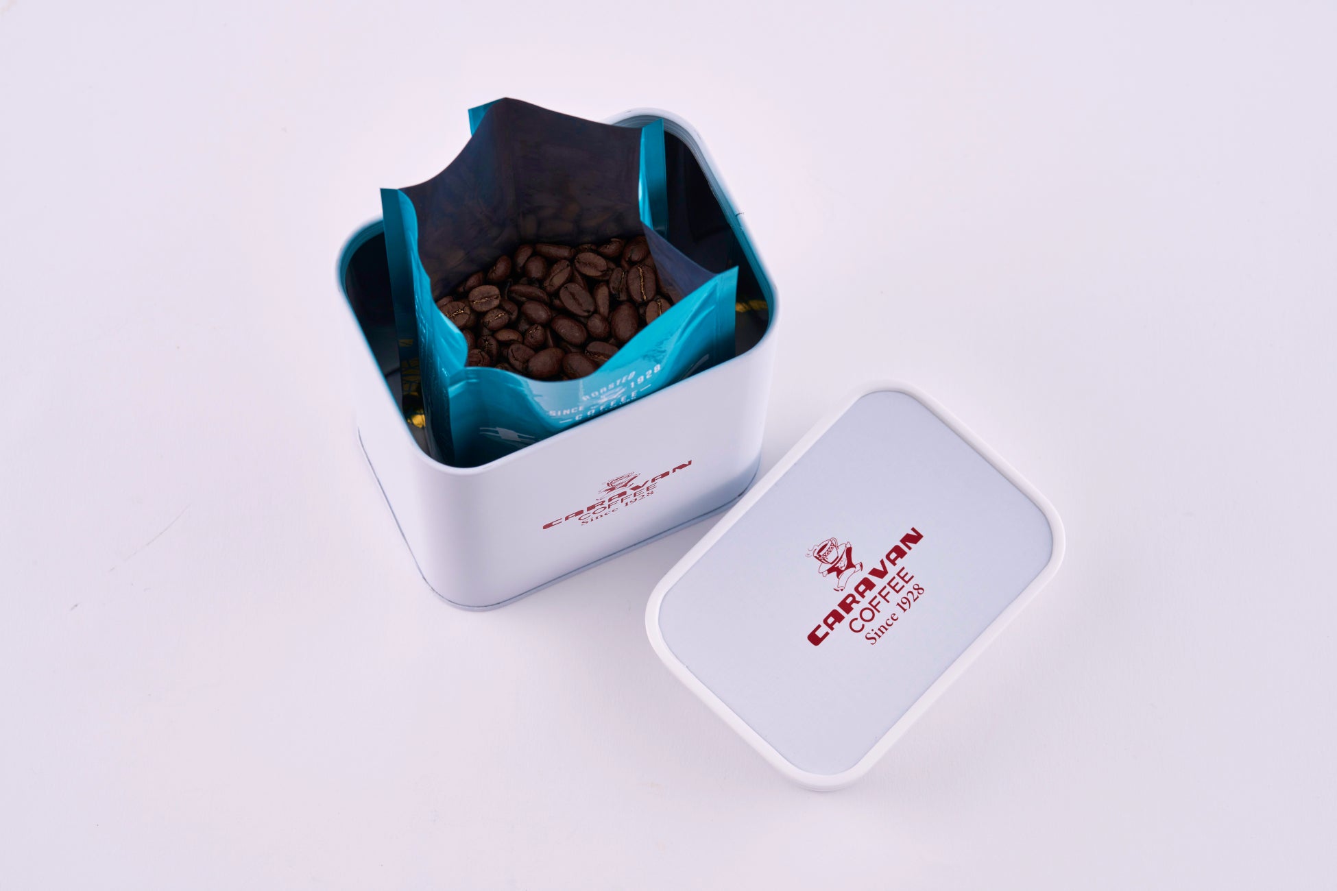 キャラバンコーヒー スクエア型オリジナル保存缶 新発売!