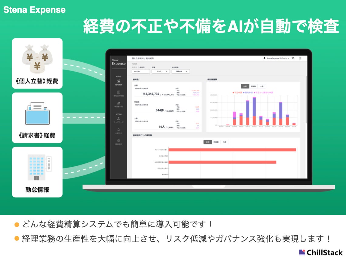 ・個人立替経費における不正・不備検知AIシステム「Stena Expense」の開発・提供