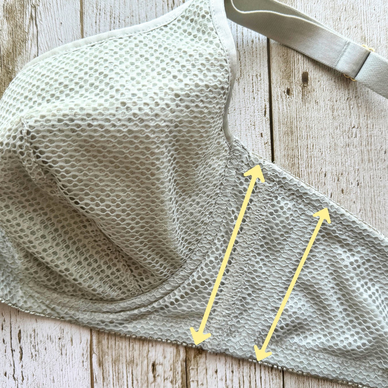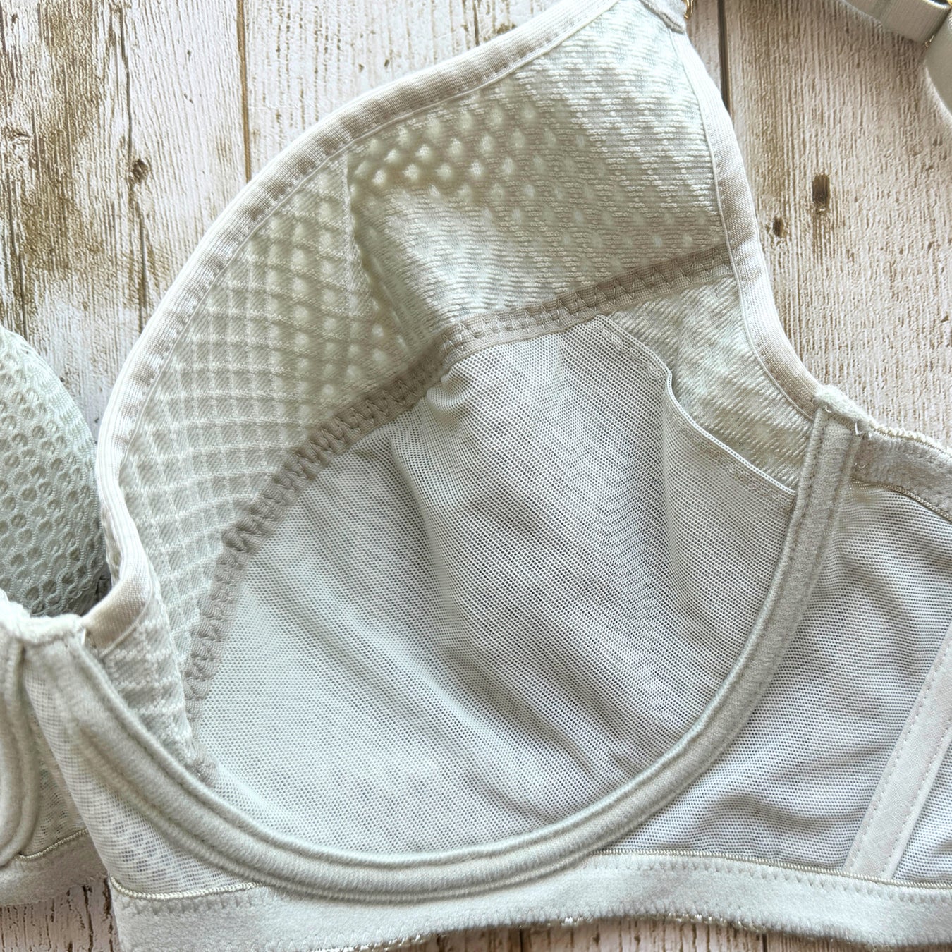 外側のスペイサー素材だけでなく、カップ肌側部分の素材も通常より薄い通気性の良いものを使用。肌に張り付く不快感を減らしてくれます。