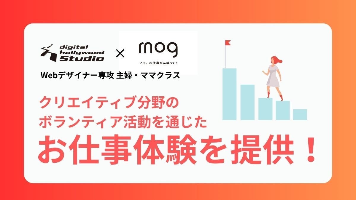 ワーキングママのキャリア支援事業を展開する株式会社mog (本社:東京都渋谷区、代表取締役社長:稲田 明恵、以下mog)は、デジタルハリウッド株式会社(本社:東京都千代田区、代表取締役社長兼CEO:吉村 毅、以下デジタルハリウッド)とコラボしたサービス提供を開始いたしました。