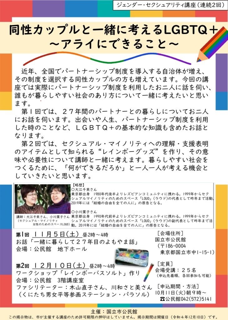 ■講 師 :⼤江千束さん、⼩川葉⼦さん(セクシュアル・マイノリティ⼥性のためのスペースLOUD)