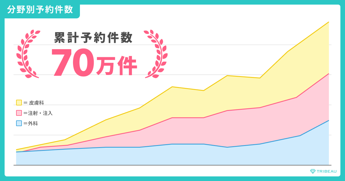 2017年10月にサービス提供を開始し、2018年11月にはアプリから直接美容クリニックを予約することが可能となりました。コロナ禍でのライフスタイルの変化による需要拡大を追い風に、独自データおよび口コミの蓄積に加えて、導入クリニックや施術メニュー数の拡大、UI/UX改善を重ねることで、2024年10月には累計150万ダウンロードを突破し、累計GMVは200億円に到達。日本を代表する業界最大規模の美容医療プラットフォームへと成長しています。