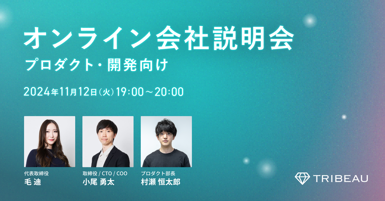 プロダクト/開発・マーケティング・事業企画・セールスを中心に、全ポジションで積極採用中です。オンライン会社説明会にて経営陣からトリビューの事業内容や今後の展開についてお話します。