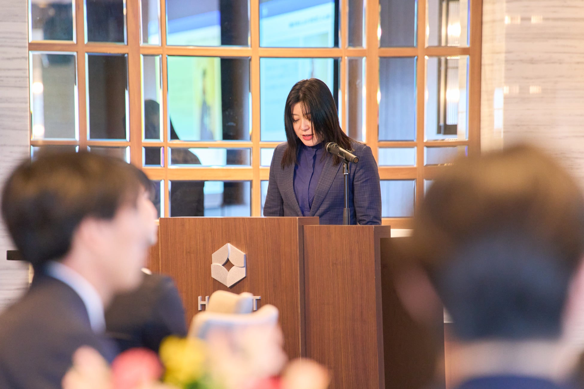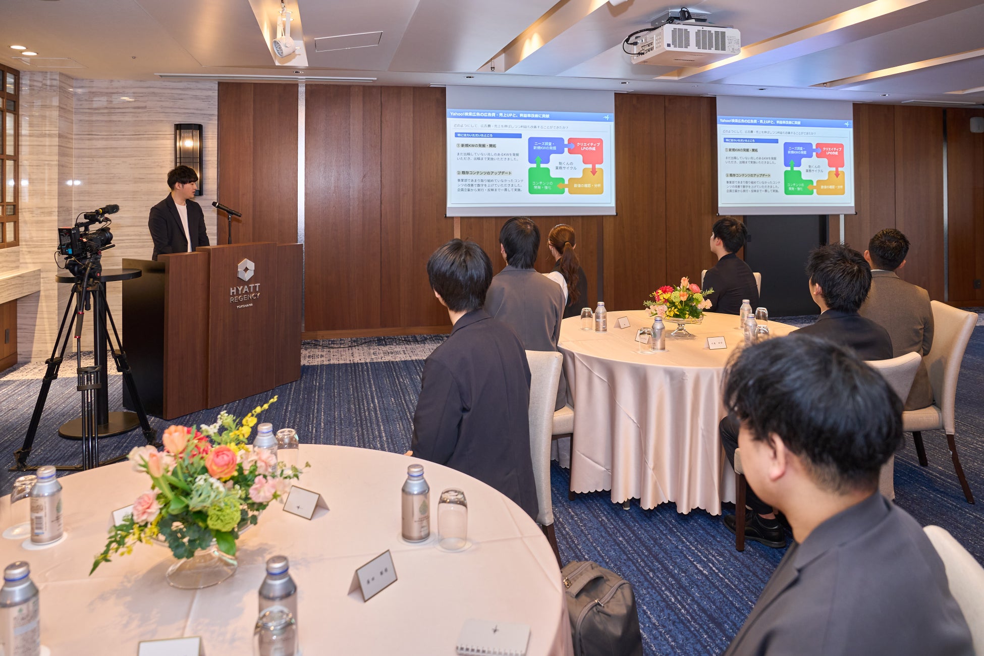 入社式は、新卒社員が会社でどのような成長機会を得られるかを具体的にイメージできる内容となっており、昨年入社した先輩社員が1年間で残した成果や取り組みについて共有されました。