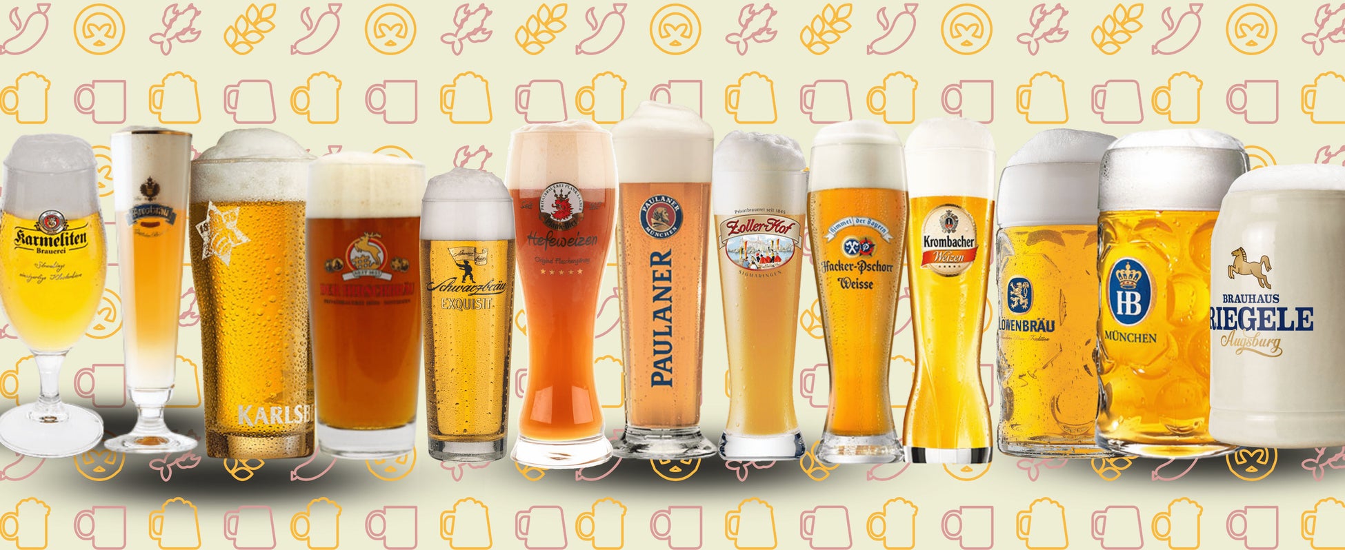 各メーカー、様々なデザインのビールグラスを用意しており、本場ミュンヘンでも定番の1Lのジョッキをはじめ、