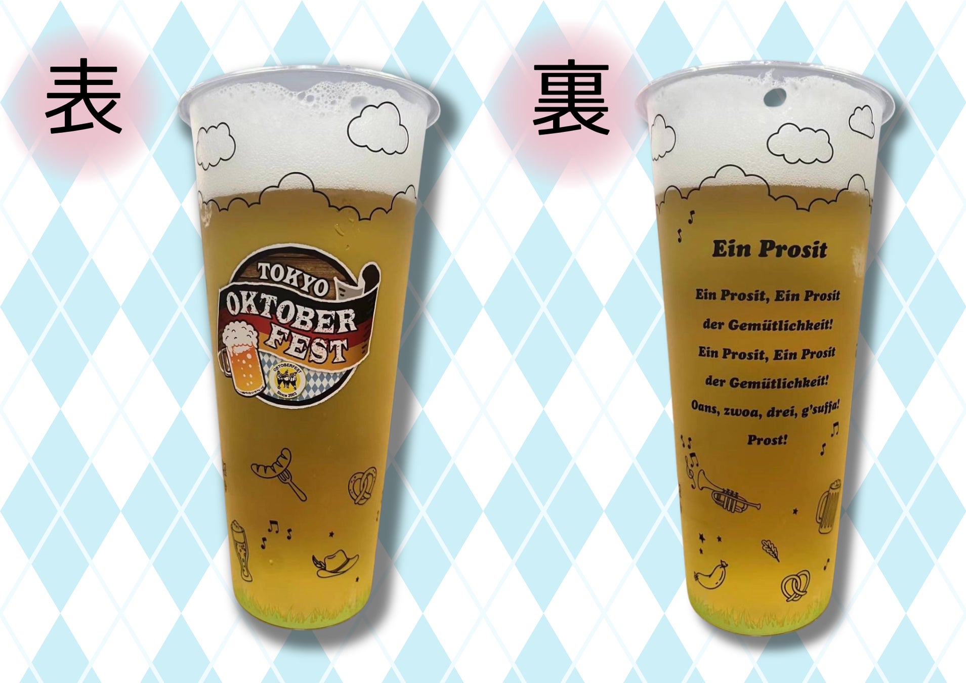 新しいデザインのリユースカップにはオクトーバーフェストの乾杯の歌