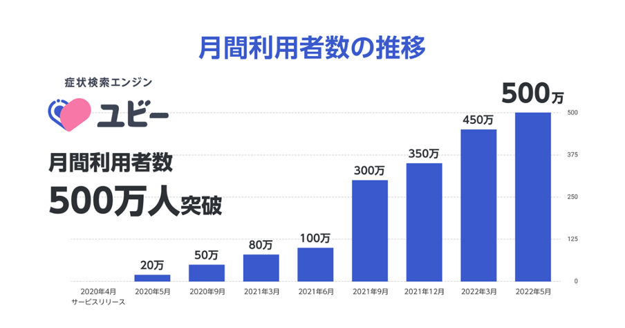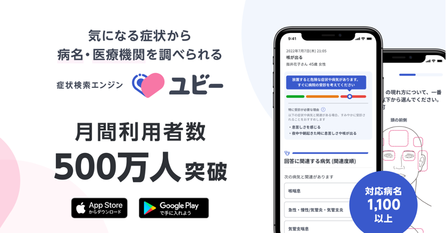 症状検索エンジン「ユビー」の月間利用者数が500万人を突破
