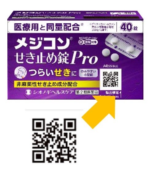 メジコンシリーズでは製品の適正使用推進のため、個装箱の中面に用法・用量を記載、薬を包装するPTPシートの裏面にQRコードを記載し、薬の情報をすぐに調べることが出来るようにするなど、すべての人にわかりやすいデザインを採用しています。