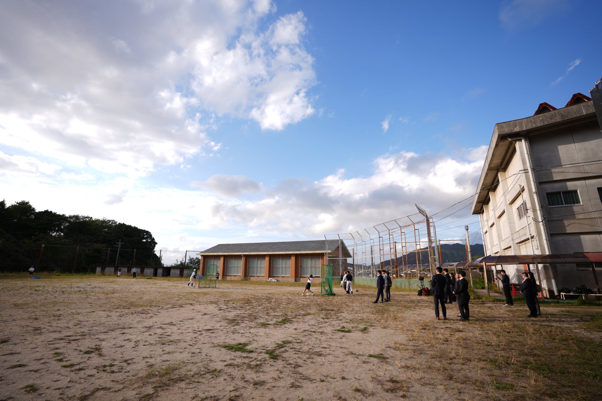 贈呈式の後は宇美東中学校に移動し、まずは野球部の練習を見学。