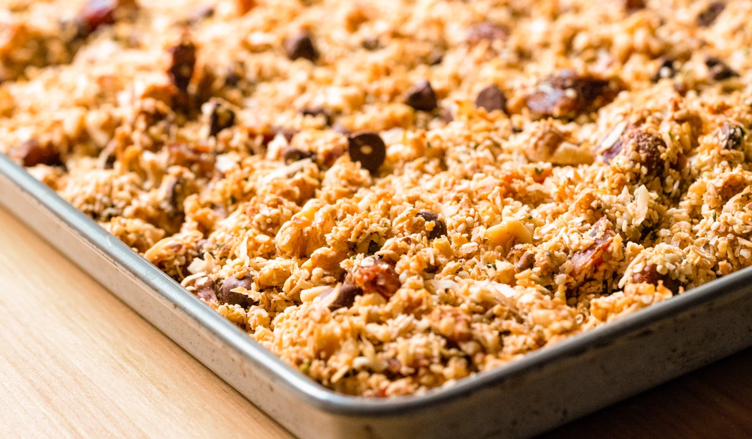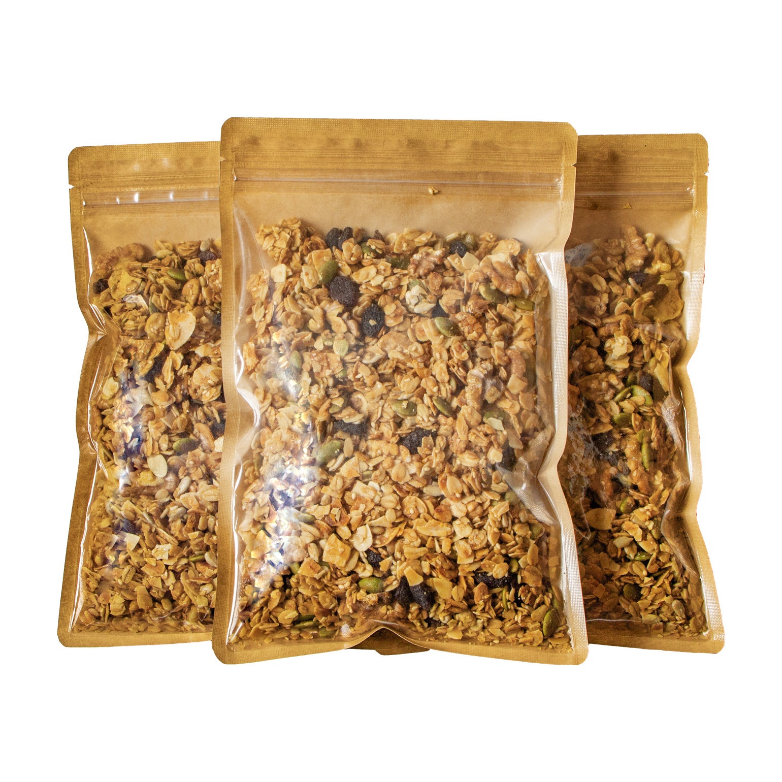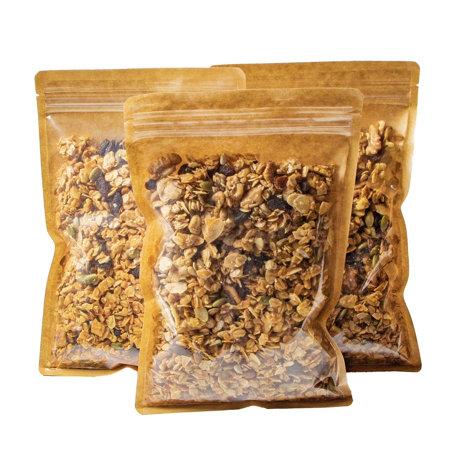 有機オートミールとごろごろしたナッツ、そして低GIの生はちみつをたっぷり使用!ナッツは、一粒一粒丁寧に選りすぐり、手作業でミックス、オーブンで2度焼きするこだわりの製法。手間と時間をかけるため、1日に限られた数しか作れません。豊かな食感と、鼻腔を満たす香ばしさがふわりと広がり、スプーンひとさじで予想以上の満足感を得られます。
