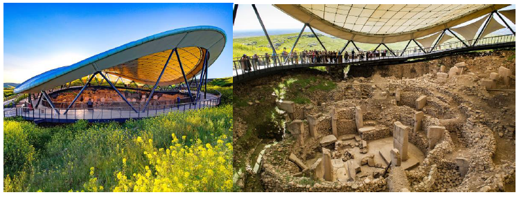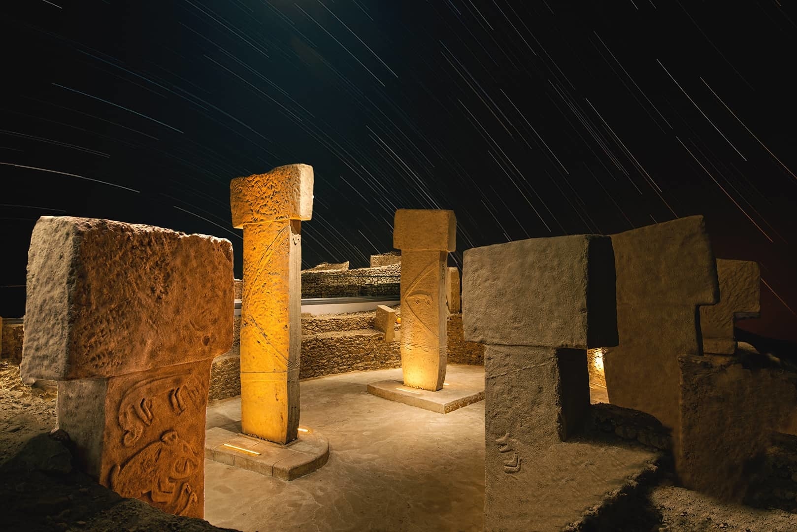 ギョベクリテぺにあるT字型のオベリスクは、高さ5.5mに達し、人間が作った記念碑的建築物の最初の例とされています。動物をモチーフにしたものや、幾何学形、神話的な物語を思わせる人間描写が描かれているオベリスクは、ギョベクリテぺが信仰の中心地として利用されていたことをあらわしています。また、金属器がなかった時代に火打石で彫られたオベリスクは、世界で最古の彫刻であり、人類史上最古の造作物です。また、ギョベクリテぺには定住生活への移行を示す最初の事例があり、新石器時代のコミュニティが社会組織を持ち、信仰に基づく目的でここに集まっていたことを表しています。