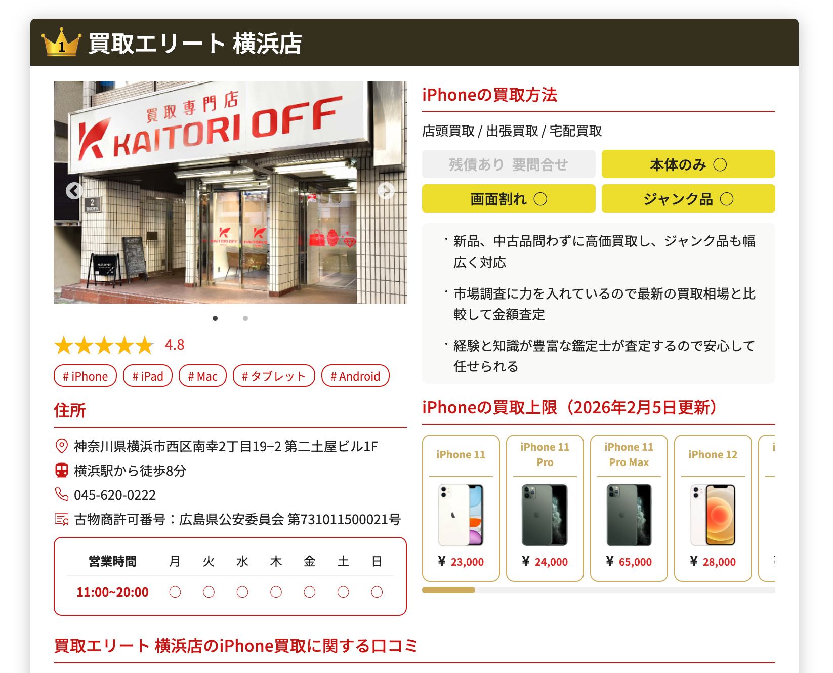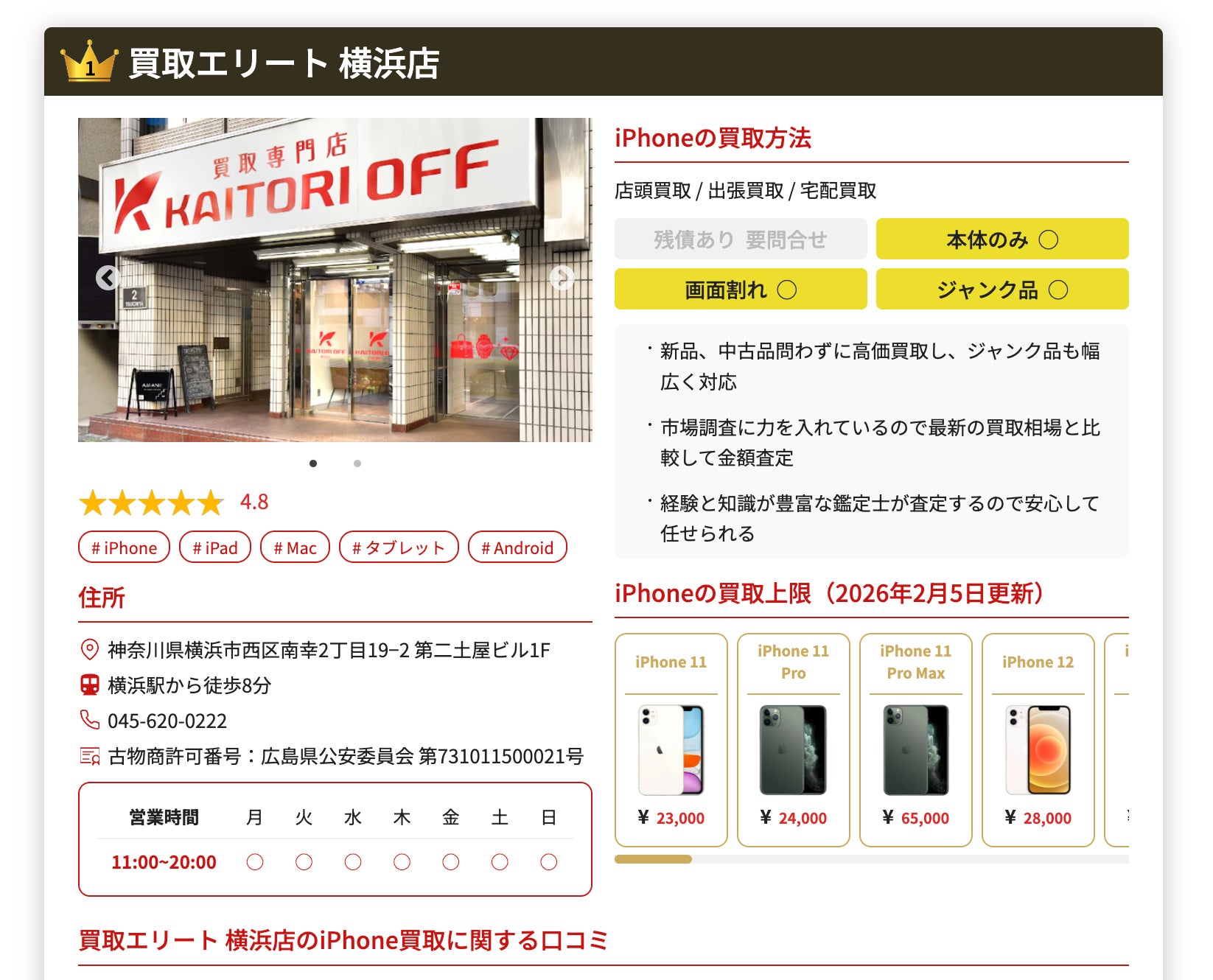 昨今のiPhone価格高騰に伴い、中古iPhoneの買取需要は急増しています。しかし、ユーザーからは「どの店舗が信頼できるのかわからない」「本当に適正価格なのか?」といった不安の声も多く寄せられていました。 今回のアップデートでは、このような不安を払拭し、初心者でも安心して高く売るためのサイトリニューアルを行いました。