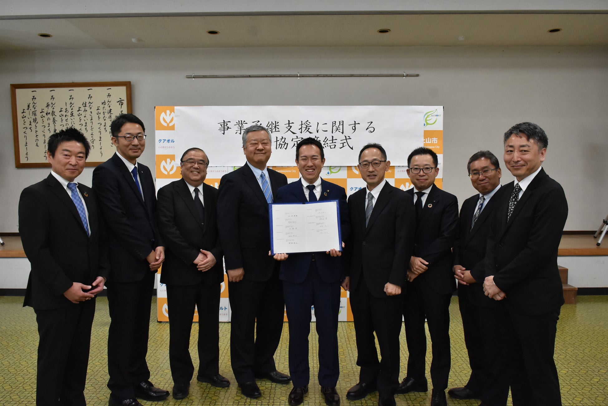 上山市、上山市商工会、株式会社山形銀行、株式会社荘内銀行、株式会社きらやか銀行、山形信用金庫、株式会社日本政策金融公庫、山形県事業承継・引継ぎ支援センターと協定締結。円滑な事業承継を促進します。