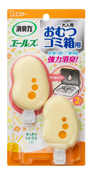 「消臭力 エールズ おむつゴミ箱用」は使用済みのおむつや尿とりパッドを捨てるゴミ箱からもれる尿臭や便臭のニオイをしっかり消臭する“介護専用”に特化したリキッドタイプの消臭剤です。