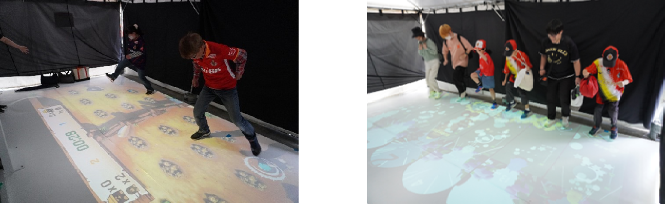 DIDIM とは、床に投影された映像を見ながら、直感的かつ足や手を使って全身で運動ができる韓国発の最新鋭のレクリエーションマシーンで、様々なエクササイズや脳トレなどのゲームのモードが搭載されており、お子様からお年寄りまで幅広い世代で楽しむことができます。