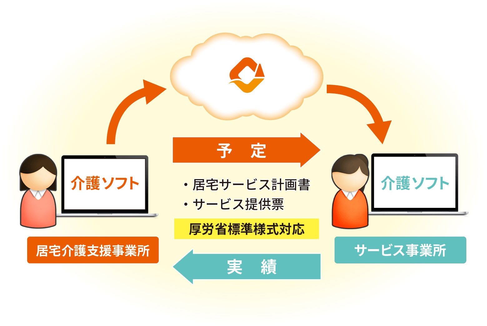 また、連携に参加する介護事業者に対し、厚生労働省が定める「居宅介護支援事業所と、介護サービス提供事業所や医療機関等との間におけるデータ連携のための標準仕様」に基づくケアプランデータ連携のプラットフォームとして、居宅サービス計画書とサービス提供票のやり取りをシステム上での利用を可能とし、業務効率化とコスト削減を図り、労働環境の改善に寄与します。
