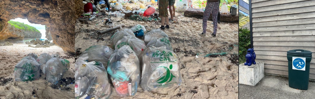 施設外の海洋保全活動にも積極的に取り組んでいます。一般社団法人ネレイスと連携した「未来に残そう宮古ブループロジェクト」では、宮古島のゴミ問題に向き合って取り組みを進めています。ホテル内にも施設を訪れる方が気軽に「ビーチクリーン」を行えるように、漂着ゴミ専用ゴミ箱を設置しました。